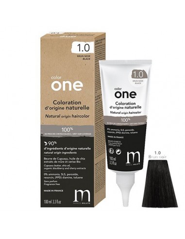 Mulato Color One Coloration Naturelle : est une coloration naturelle prête à l'emploi. Formulée sans aucun agent chimique agressif, les colorations Color One® Mulato sont idéales pour couvrir efficacement les cheveux blancs ou pour donner un nouvel éclat à la chevelure.