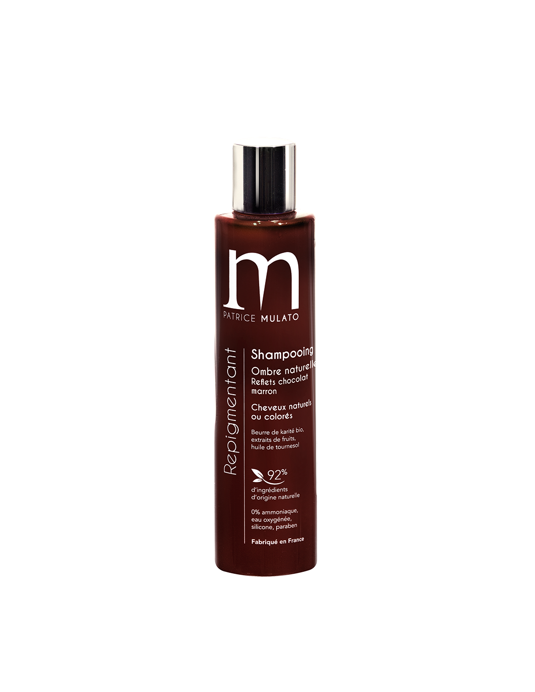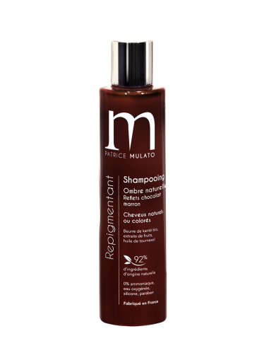Mulato Repigmentant Shampooing Ombre Naturelle : est un shampoing composé à 92% d'ingrédients naturels. Il ravive la couleur et donne de la brillance aux cheveux colorés et naturels. Made In France