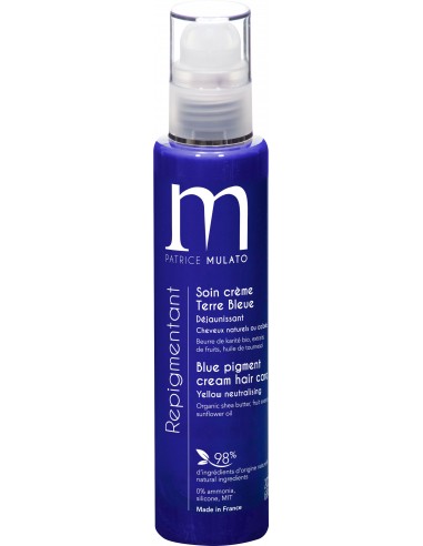 Mulato Repigmentant Terre Bleue : est un soin repigmentant et déjaunissant composé à 98% d'ingrédients naturels, qui colore le cheveu de façon durable tout en préservant l'équilibre du cuir chevelu. Made in France